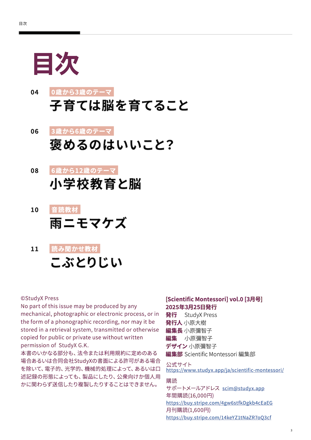 サイエンティフィック・モンテッソーリは、科学的に子育てリテラシーを高めるための月刊誌です。最新の学術研究をモンテッソーリ教育メソッドに反映し、子育てを飛躍的に楽にするヒントを探ります。